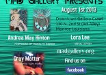 The ever present Mark and Gray will be performing at MAD Gallery for the art crawls! We are a jam duo that makes soaring studio recordings and then breaks it down … Continue reading